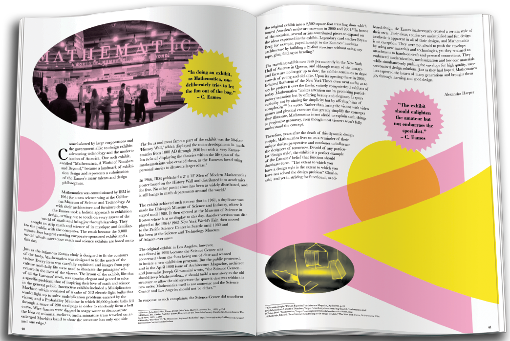 Editorial layout evoking the playful and eclectic spirit of Charles & Ray Eames and their Mathematica Exhibit.